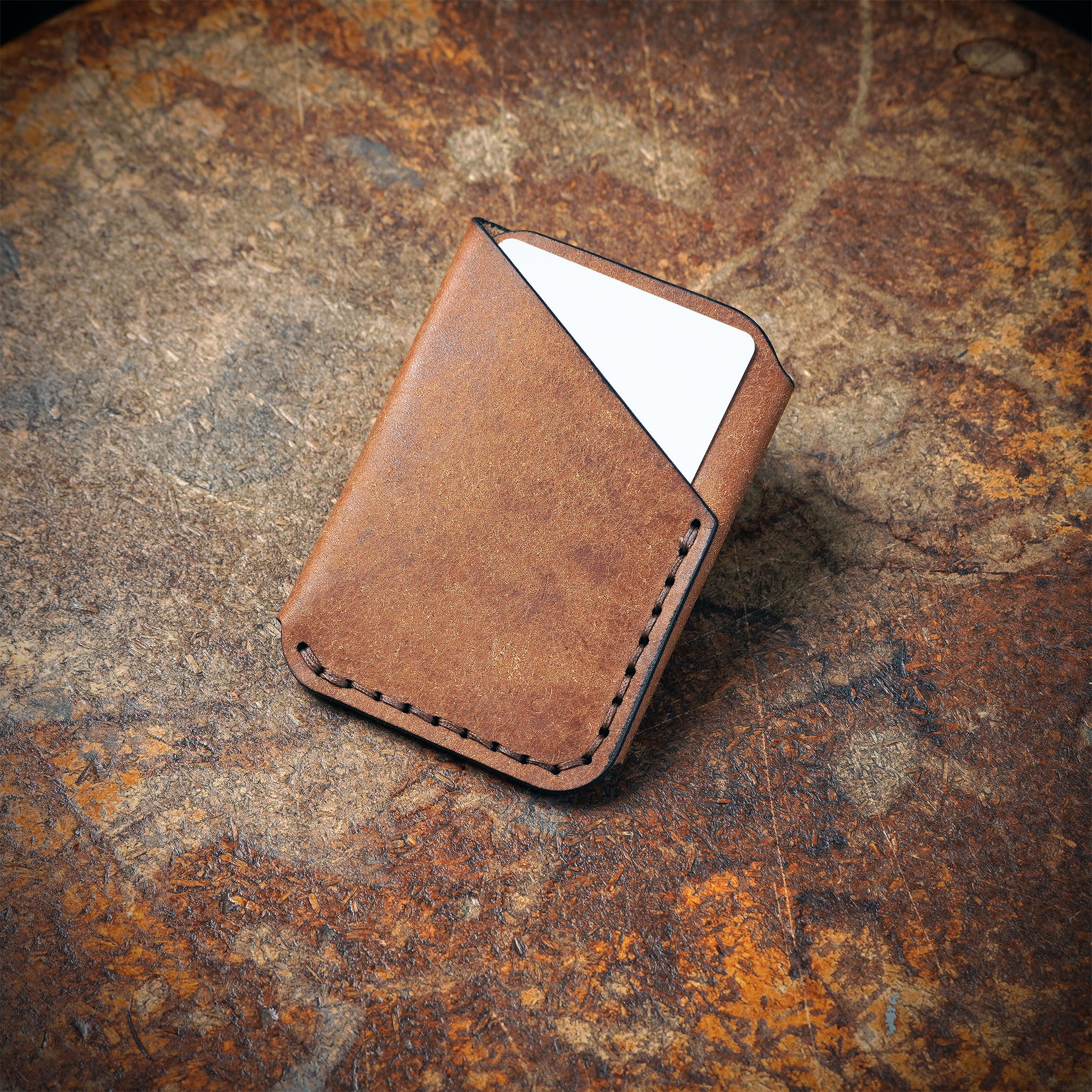 Wrap wallets are all the rage these days so this is our take on a really fun (and easy!) wallet design. This wallet features a larger storage section on the back and a more accessible card slot on the front for quick access. The back section can holder 3-4 cards comfortably and the front 1-2 until the leather breaks in. This template also comes with stitching holes cut out if you choose to use them.