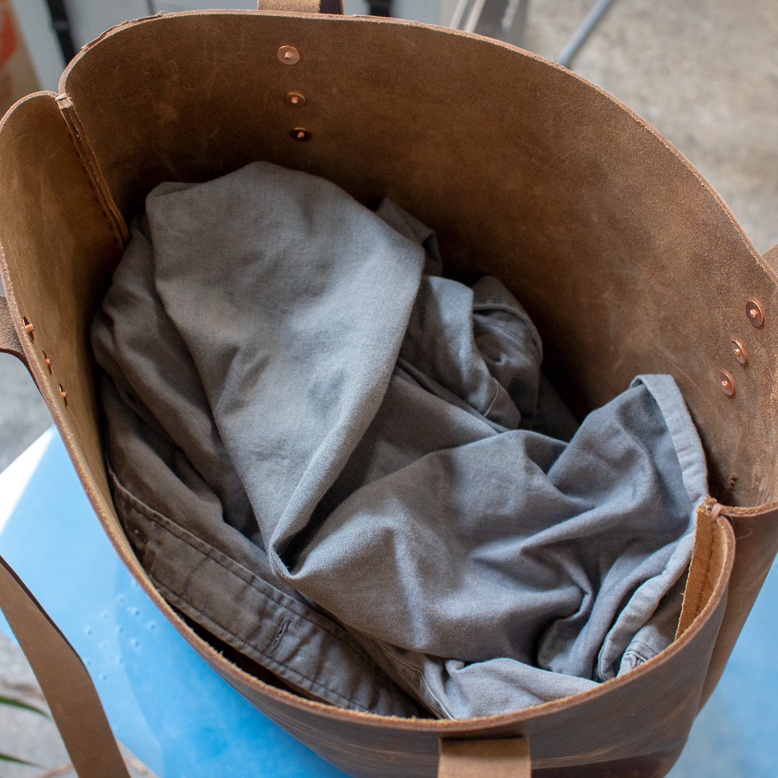 Old Basic Tote Finished dimensions: 21" wide x 14" tall x 6" deep