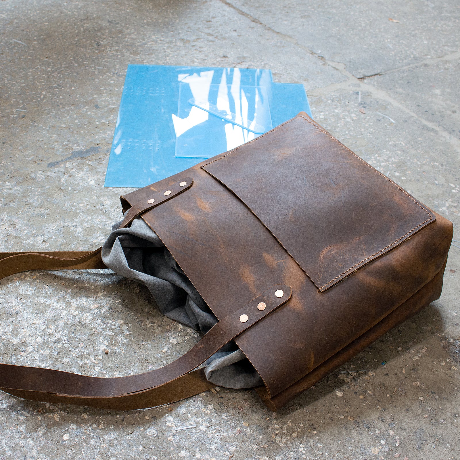 Check out the video below for a walk through on how to use this template set. You can also see more information on this project such as : List of inventory used, leather suggestions, and completed project photos by going here: http://makesupply-leather.com/templates/basic-leather-tote-bag-build-along-tutorial/