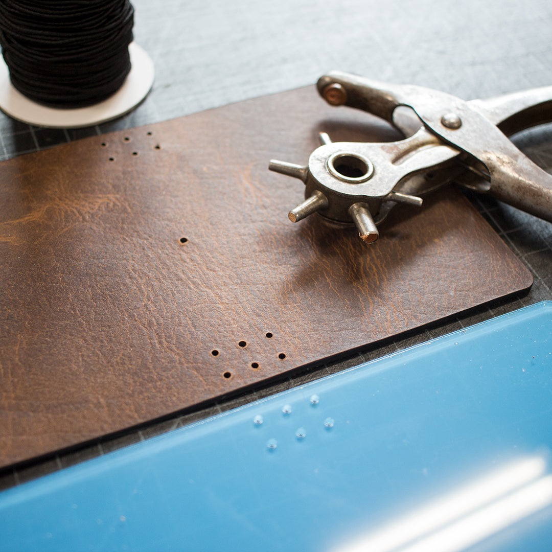 Trace the outline of the template and punch the marked holes. You can opt for creating a three hole cover style, or, just use the center holes for a one hole style.