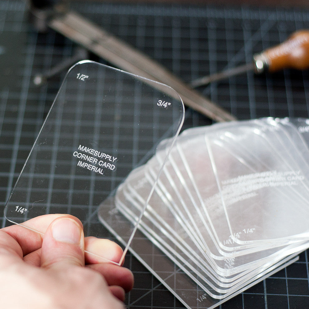 Drafting and cutting corners in leatherwork is hard work. The Corner Card helps you create perfectly measured corners every time. Save time and materials while improving the look of your pieces!