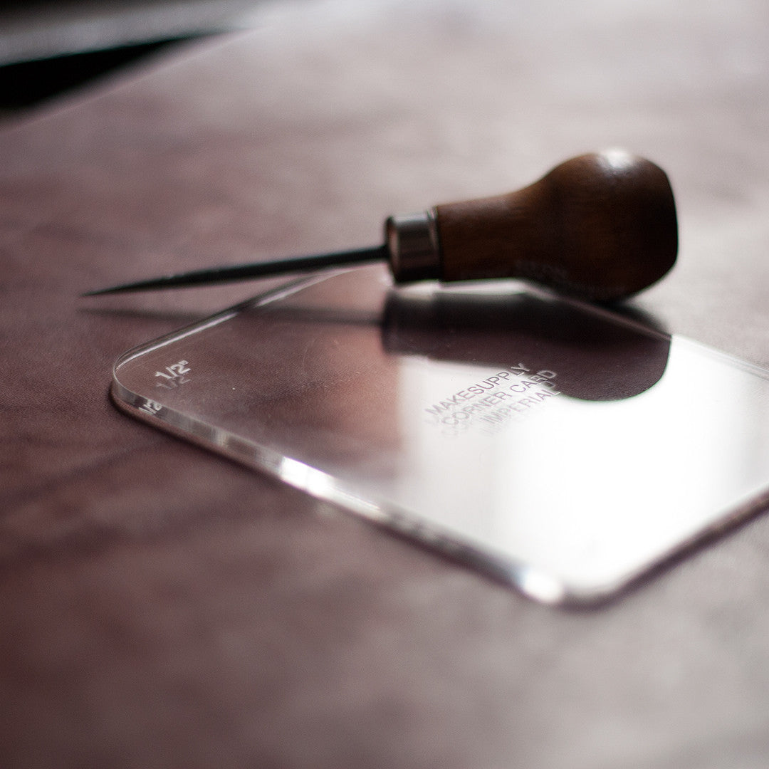 Drafting and cutting corners in leatherwork is hard work. The Corner Card helps you create perfectly measured corners every time. Save time and materials while improving the look of your pieces!